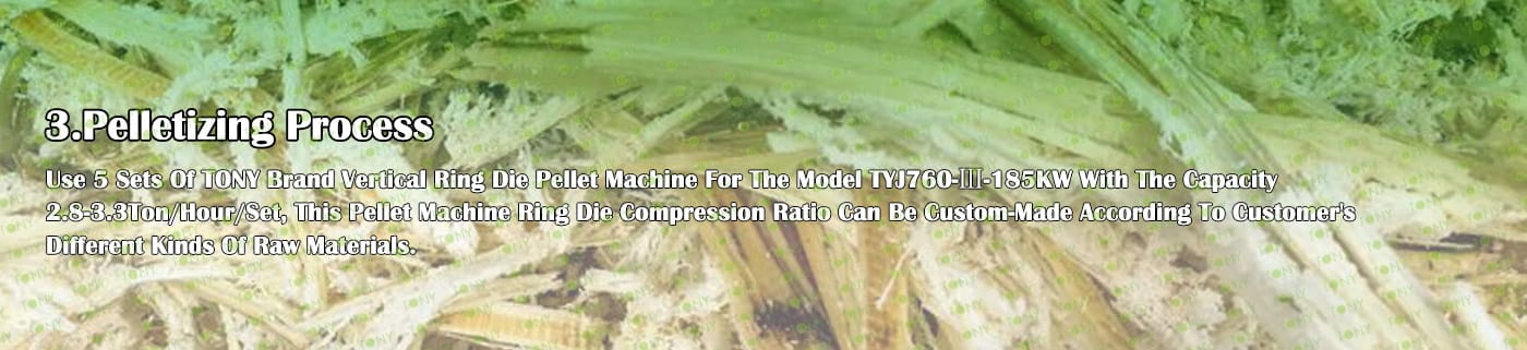 | 1. За пресоване на суха багаса в 6-8 mm пелети от биомаса 2.Модел: TYJ760-III-185KW*5 комплекта 3.Капацитет:2.8-3.2Тон/час/комплект 4.NEW 304SS Тип |