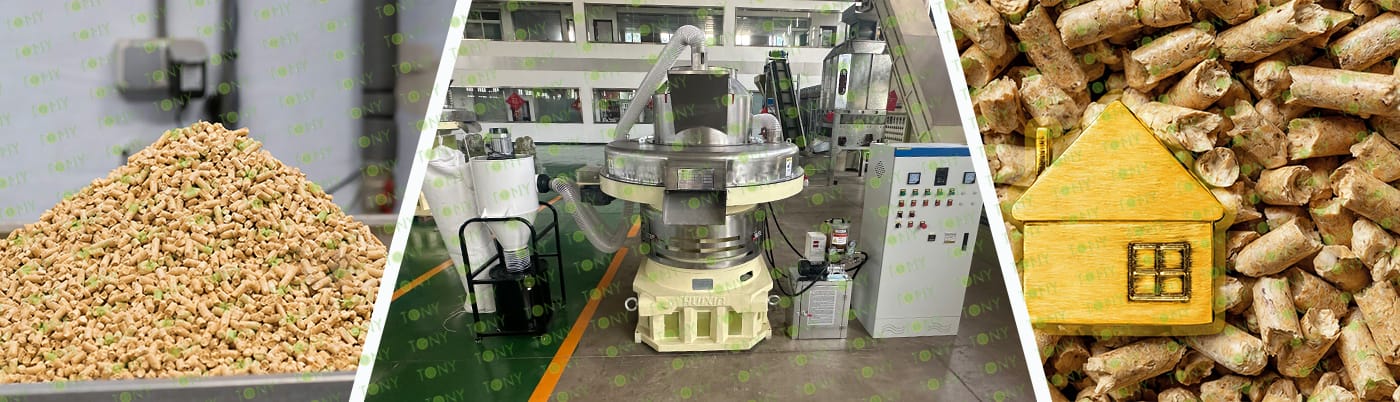 4. Основна машина: чукова мелница, въртяща се барабанна сушилня, машина за пелети TONY TYJ760-Ⅲ-185KW, охладител за пелети, опаковъчна машина и лентови транспортьори