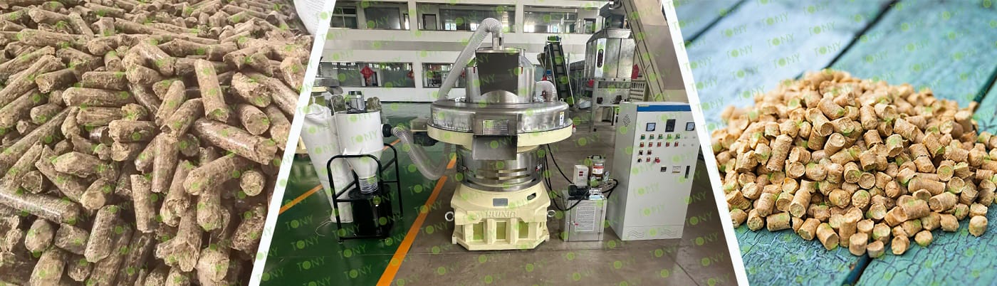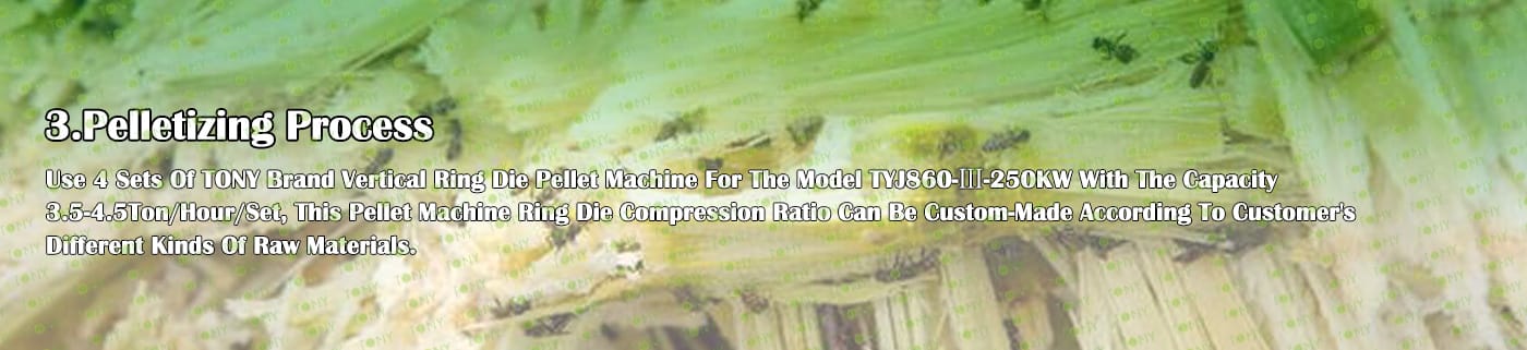 4. Основна машина: чукова мелница, сушилня с ротационен барабан, машина за пелети TONY TYJ860-Ⅲ-250KW, охладител за пелети, опаковъчна машина и лентови транспортьори