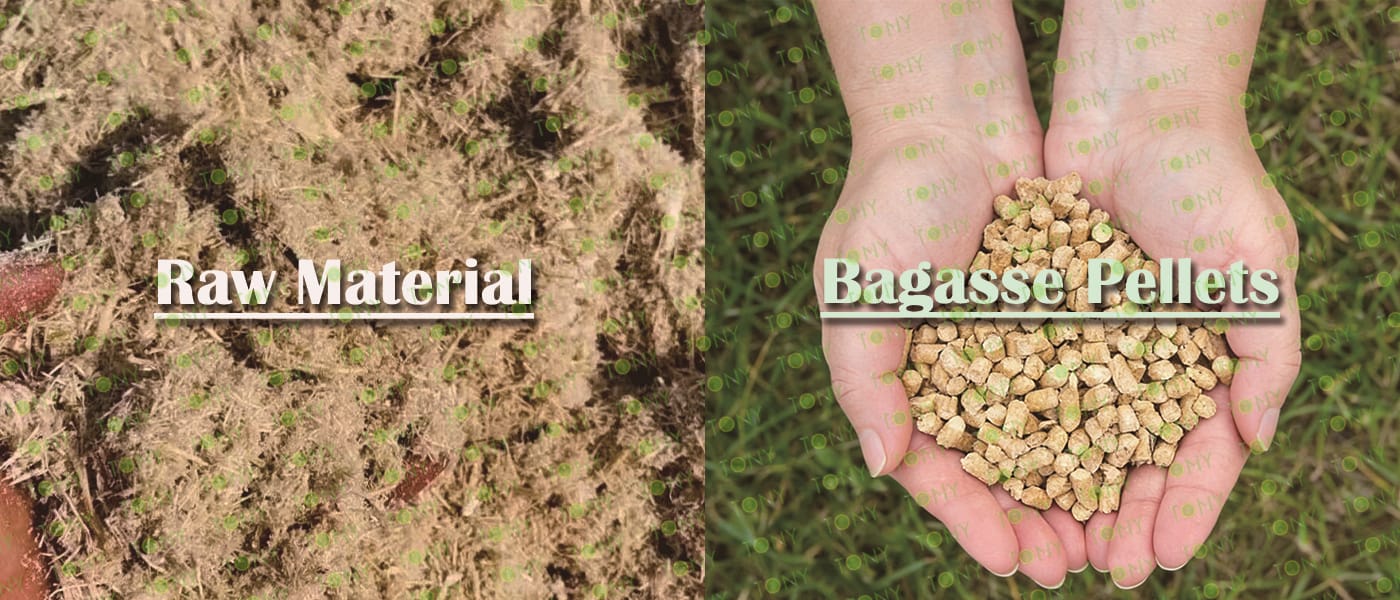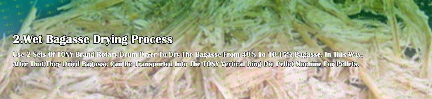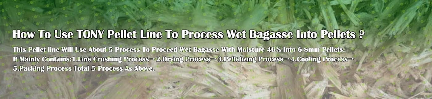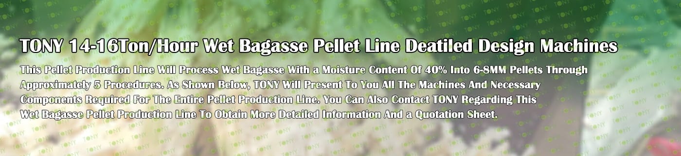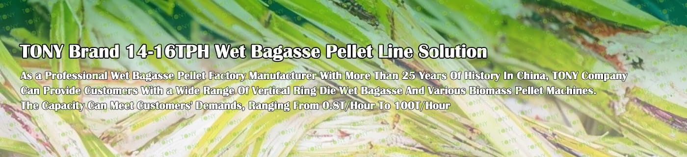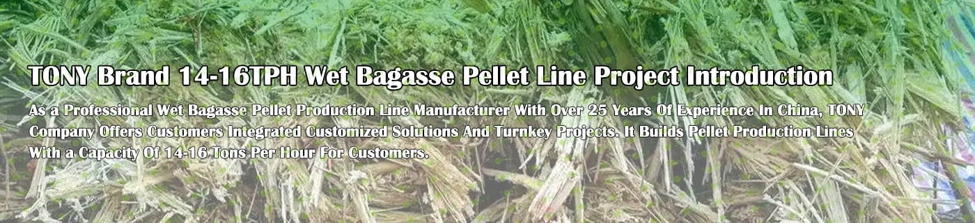 Заводът за производство на пелети за мокра багаса с марка TONY 14-16 тона/час може да използва мокра багаса като основна суровина. След предварителна обработка и обработка, той се втвърдява в пелетно гориво Bagasse с висока плътност. Това гориво е идеален заместител на въглищата и петрола и играе роля в енергоспестяването и намаляването на емисиите. Понастоящем той се използва широко в региони, богати на ресурси от багаса.