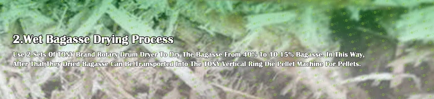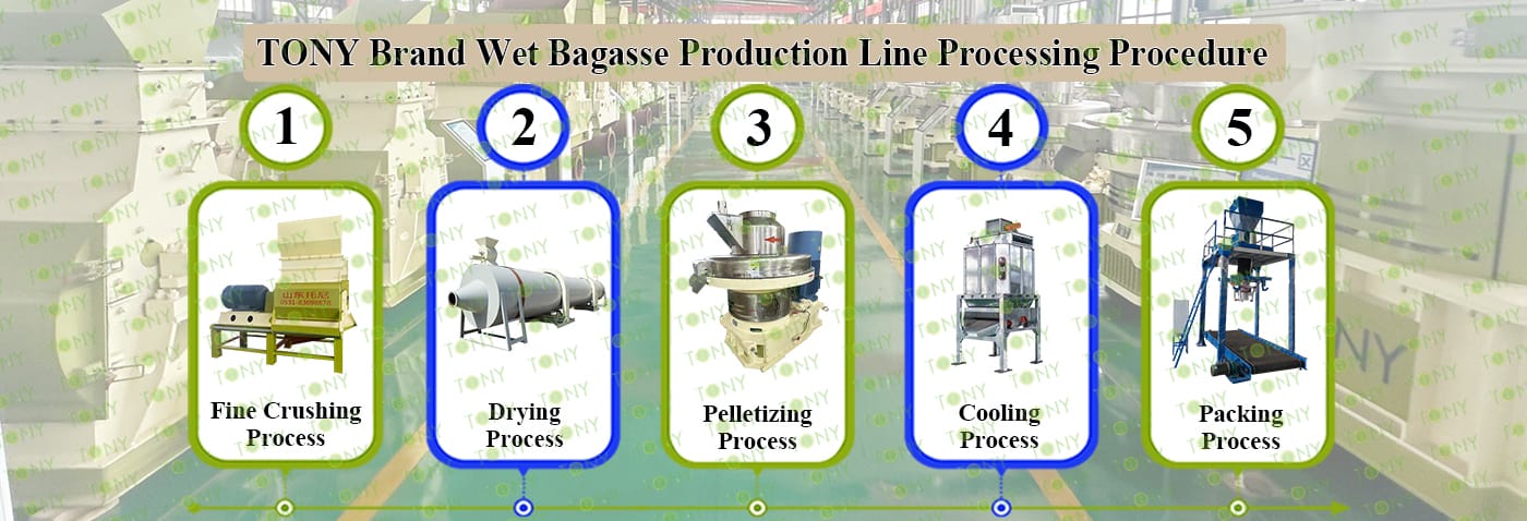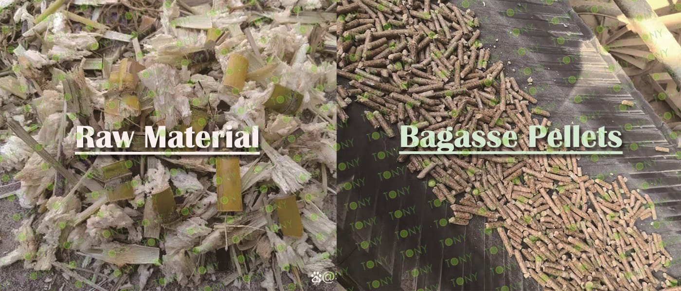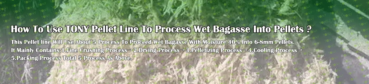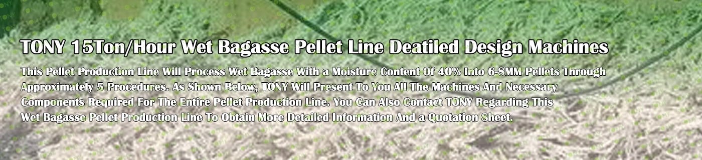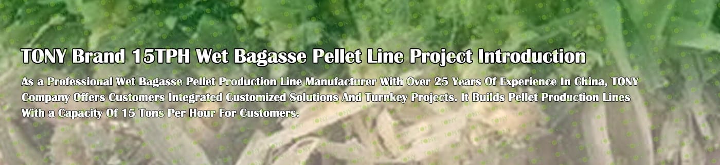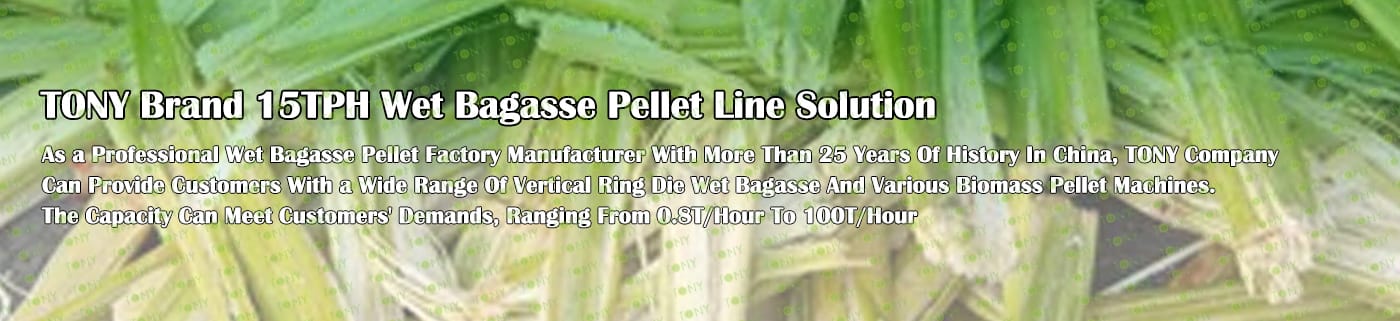 Заводът за производство на пелети за мокра багаса с марка TONY 15 тона/час може да използва мокра багаса като основна суровина. След предварителна обработка и обработка, той се втвърдява в пелетно гориво Bagasse с висока плътност. Това гориво е идеален заместител на въглищата и петрола и играе роля в енергоспестяването и намаляването на емисиите. Понастоящем той се използва широко в региони, богати на ресурси от багаса.