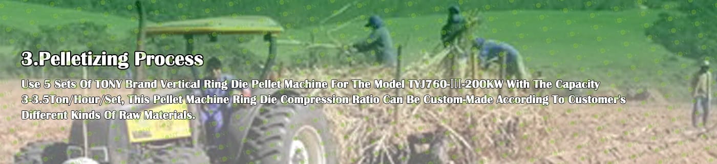 По-конкретно, лигнинът в багасата се топи при температури между 120°C и 160°C и омеква и се пластифицира при 180°C. В рамките на този температурен диапазон, при определено налягане, лигнинът се свързва плътно с целулозата в торбата. Този процес обикновено се извършва в пелетизатор за биомаса, където механичната сила изстисква и компресира насипната торба в малки пелети от биомаса с форма на пръчка.