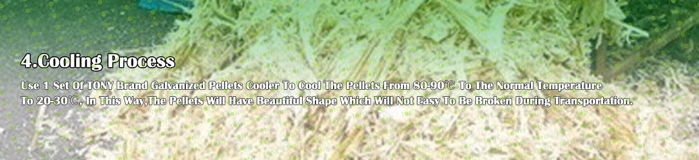 4. Основна машина: чукова мелница, сушилня с ротационен барабан, машина за пелети TONY TYJ760-Ⅲ-200KW, охладител за пелети, опаковъчна машина и лентови транспортьори