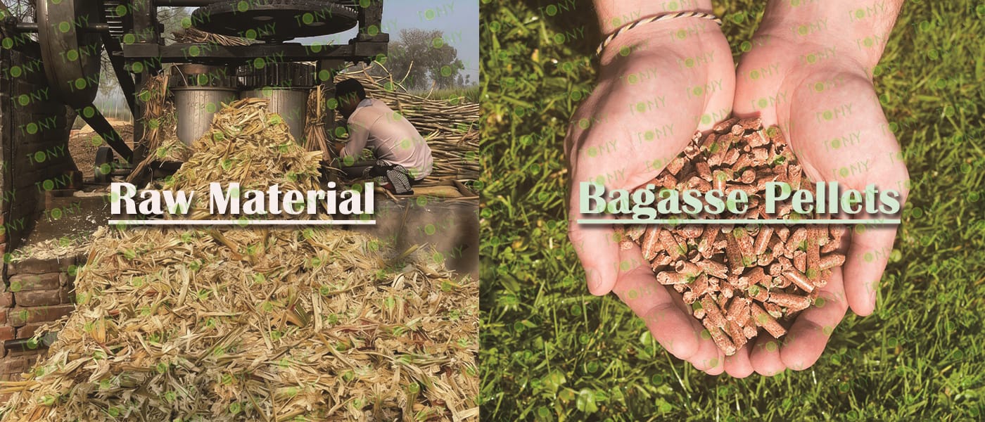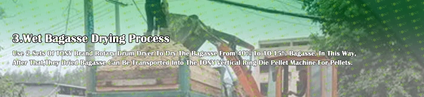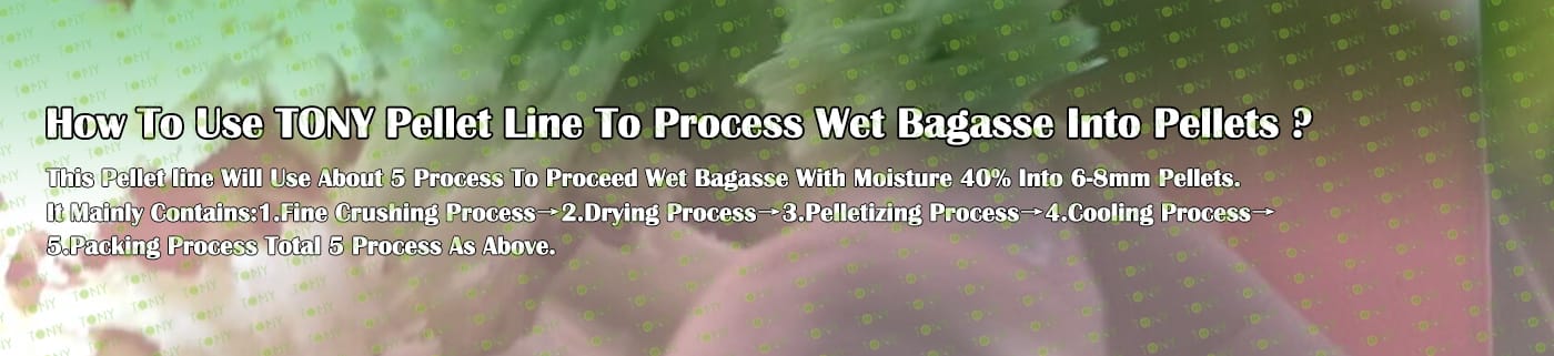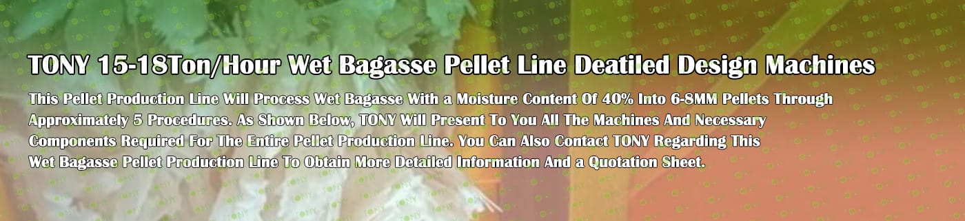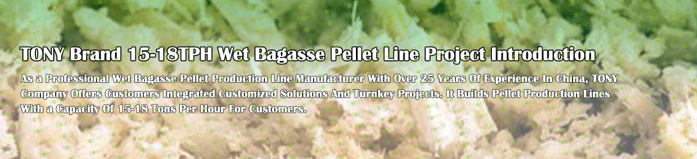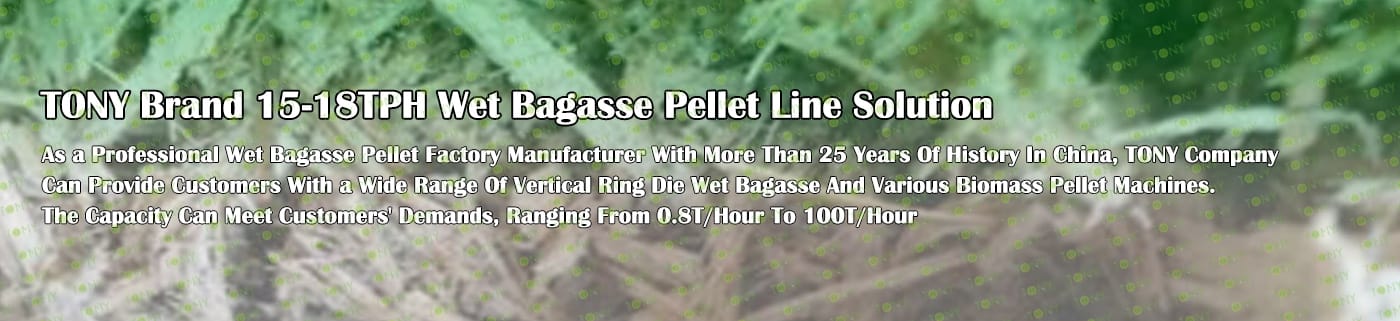 Заводът за производство на пелети за мокра багаса с марка TONY 15-18 тона/час може да използва мокра багаса като основна суровина. След предварителна обработка и обработка, той се втвърдява в пелетно гориво Bagasse с висока плътност. Това гориво е идеален заместител на въглищата и петрола и играе роля в енергоспестяването и намаляването на емисиите. Понастоящем той се използва широко в региони, богати на ресурси от багаса.