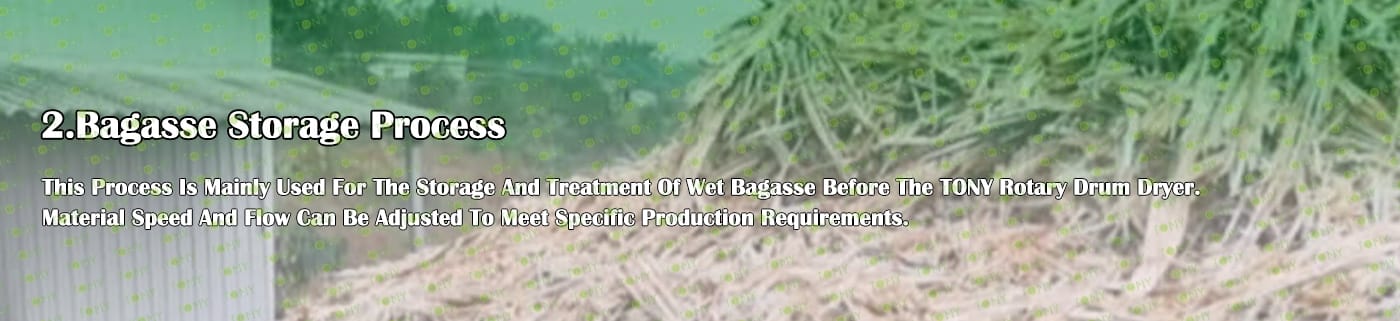 Б. Голям хидравличен силоз за съхранение на марката TONY за съхранение на багаса, която излиза от чуковата мелница. Този процес може да бъде по избор от клиента. Ако клиентът не избере контейнера за съхранение, той може да съхранява багаса директно на земята, което може да изисква малко труд.