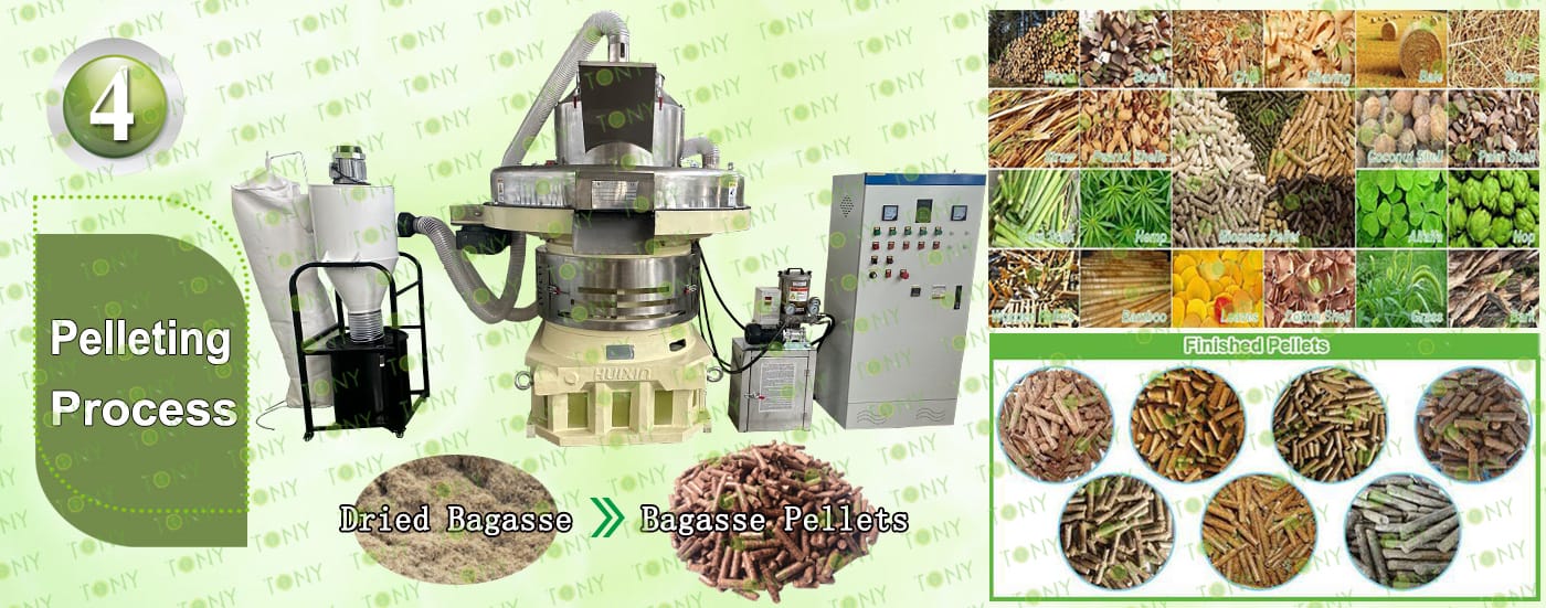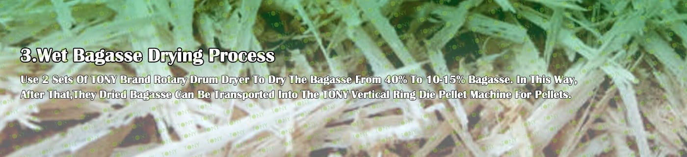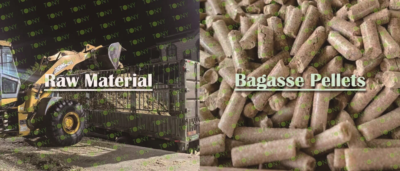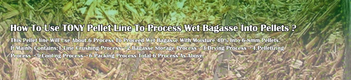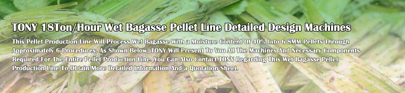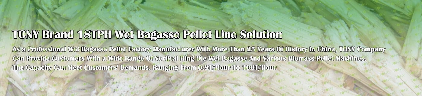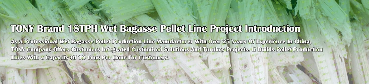 Заводът за производство на пелети за мокра багаса с марка TONY 18 тона/час може да използва мокра багаса като основна суровина. След предварителна обработка и обработка, той се втвърдява в пелетно гориво Bagasse с висока плътност. Това гориво е идеален заместител на въглищата и петрола и играе роля в енергоспестяването и намаляването на емисиите. Понастоящем той се използва широко в региони, богати на ресурси от багаса.