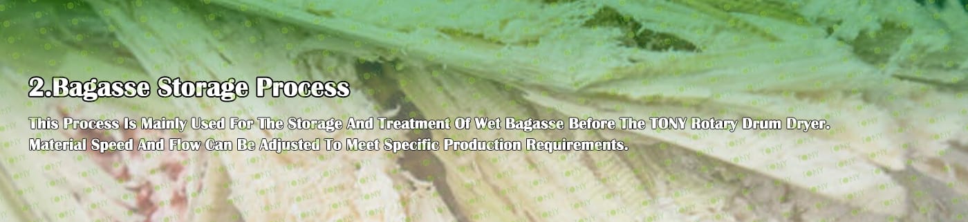 Б. Голям хидравличен силоз за съхранение на марката TONY за съхранение на багаса, която излиза от чуковата мелница. Този процес може да бъде по избор от клиента. Ако клиентът не избере контейнера за съхранение, той може да съхранява багаса директно на земята, което може да изисква малко труд.