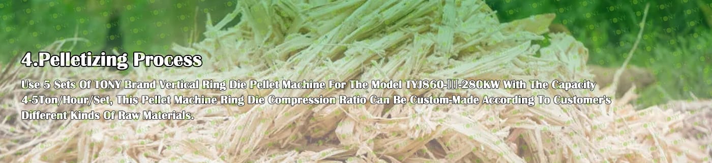 | 1. За пресоване на суха багаса в 6-8 mm пелети от биомаса 2.Модел: TYJ860-III-280KW*5 комплекта 3.Капацитет:4-5Тон/час/комплект 4.NEW 304SS Тип |