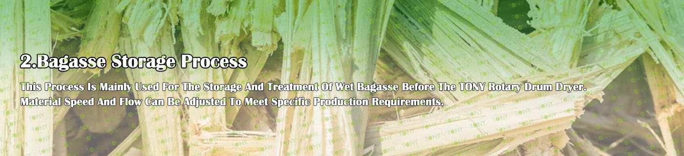 Б. Голям хидравличен силоз за съхранение на марката TONY за съхранение на багаса, която излиза от чуковата мелница. Този процес може да бъде по избор от клиента. Ако клиентът не избере контейнера за съхранение, той може да съхранява багаса директно на земята, което може да изисква малко труд.
