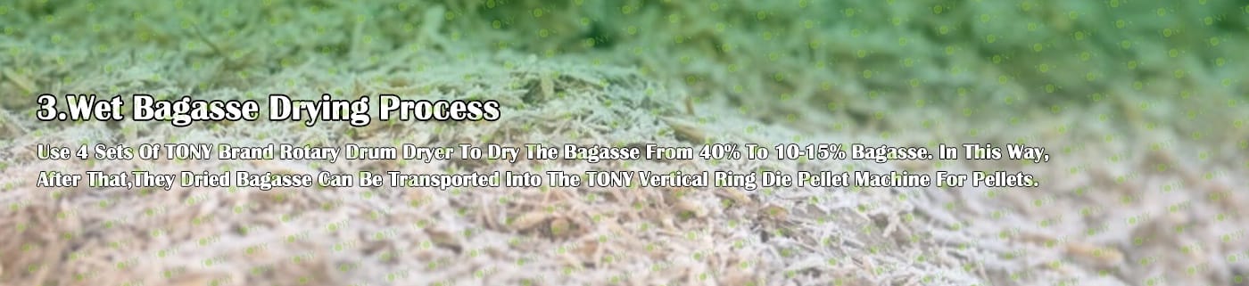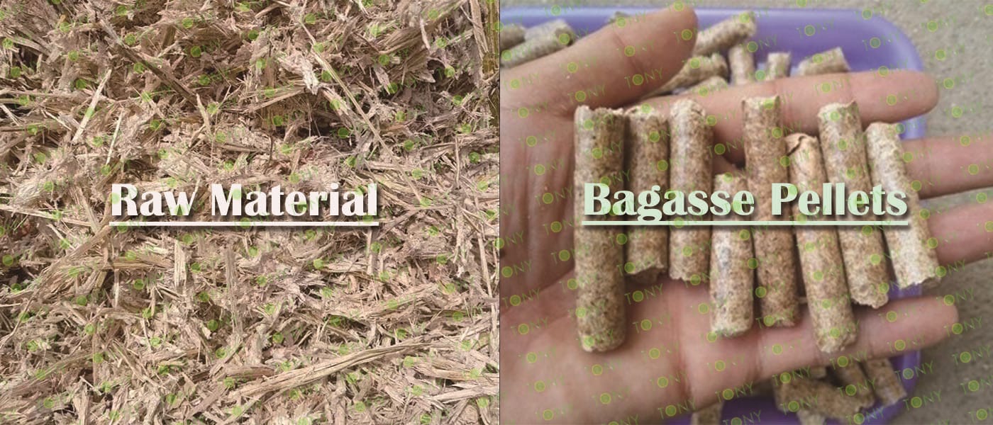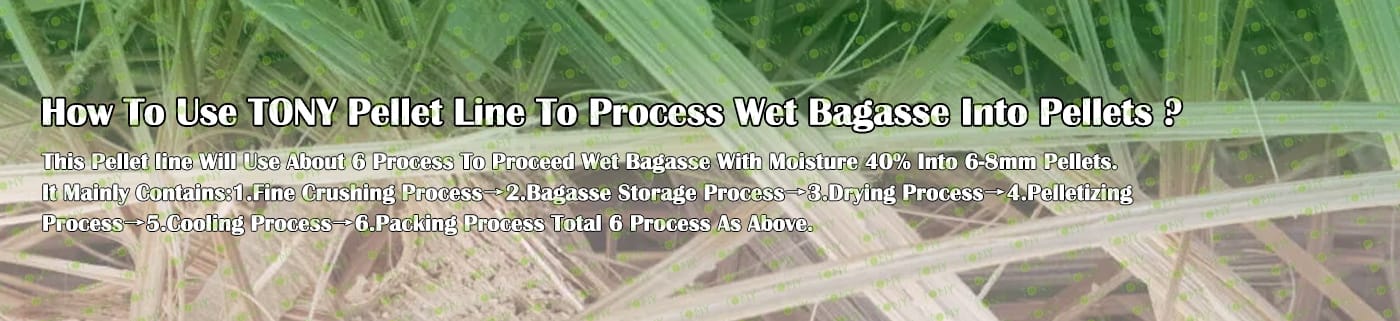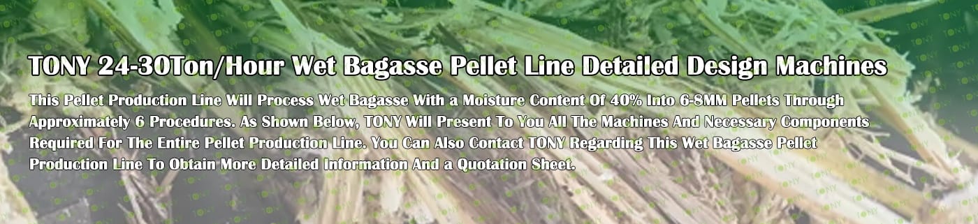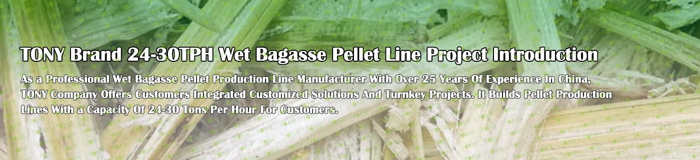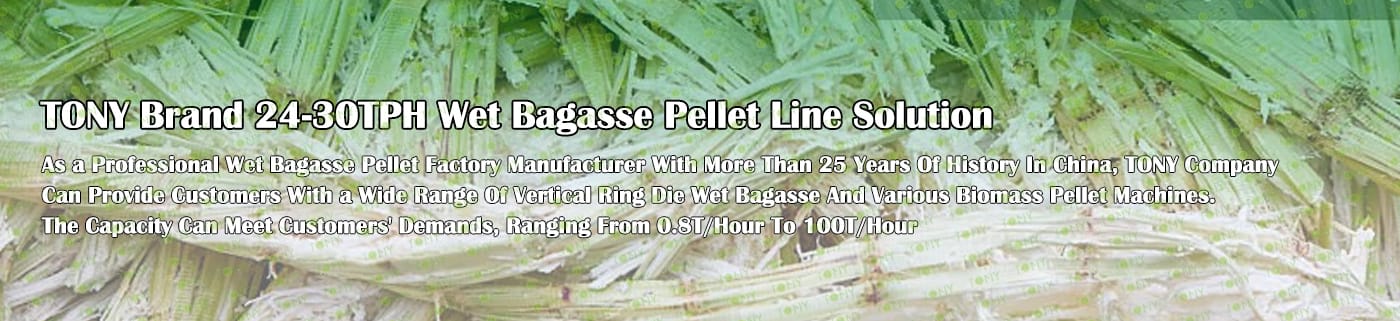 Заводът за производство на пелети за мокра багаса с марка TONY 24-30 тона/час може да използва мокра багаса като основна суровина. След предварителна обработка и обработка, той се втвърдява в пелетно гориво Bagasse с висока плътност. Това гориво е идеален заместител на въглищата и петрола и играе роля в енергоспестяването и намаляването на емисиите. Понастоящем той се използва широко в региони, богати на ресурси от багаса.