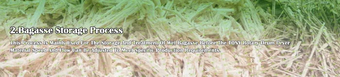 Б. Голям хидравличен силоз за съхранение на марката TONY за съхранение на багаса, която излиза от чуковата мелница. Този процес може да бъде по избор от клиента. Ако клиентът не избере контейнера за съхранение, той може да съхранява багаса директно на земята, което може да изисква малко труд.