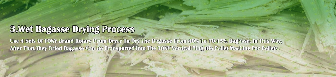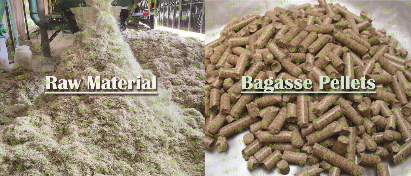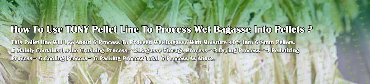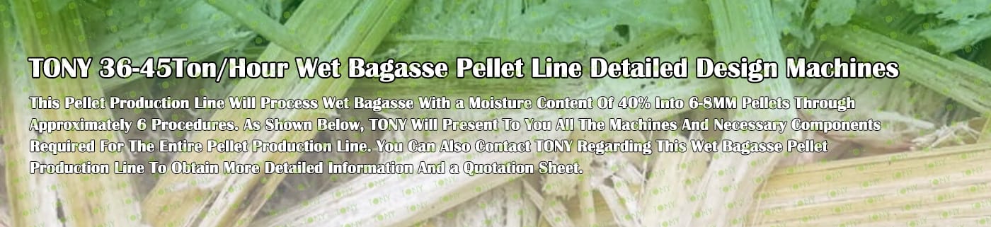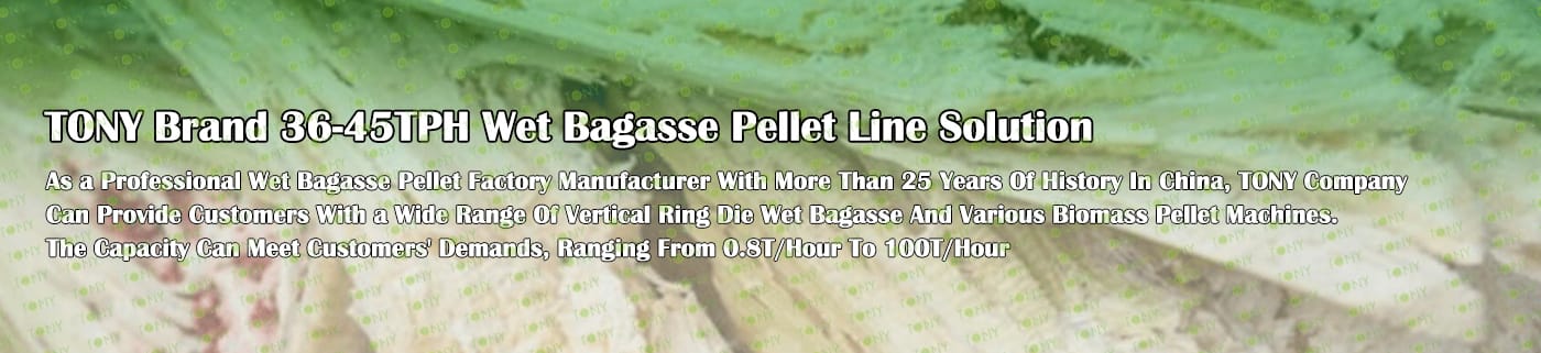 Заводът за производство на пелети за мокра багаса с марка TONY 36-45 тона/час може да използва мокра багаса като основна суровина. След предварителна обработка и обработка, той се втвърдява в пелетно гориво Bagasse с висока плътност. Това гориво е идеален заместител на въглищата и петрола и играе роля в енергоспестяването и намаляването на емисиите. Понастоящем той се използва широко в региони, богати на ресурси от багаса.