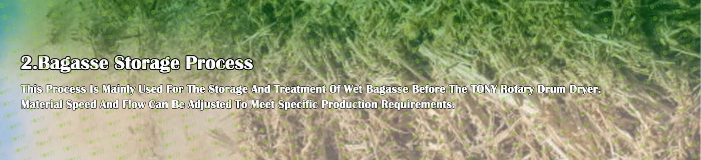 Б. Голям хидравличен силоз за съхранение на марката TONY за съхранение на багаса, която излиза от чуковата мелница. Този процес може да бъде по избор от клиента. Ако клиентът не избере контейнера за съхранение, той може да съхранява багаса директно на земята, което може да изисква малко труд.