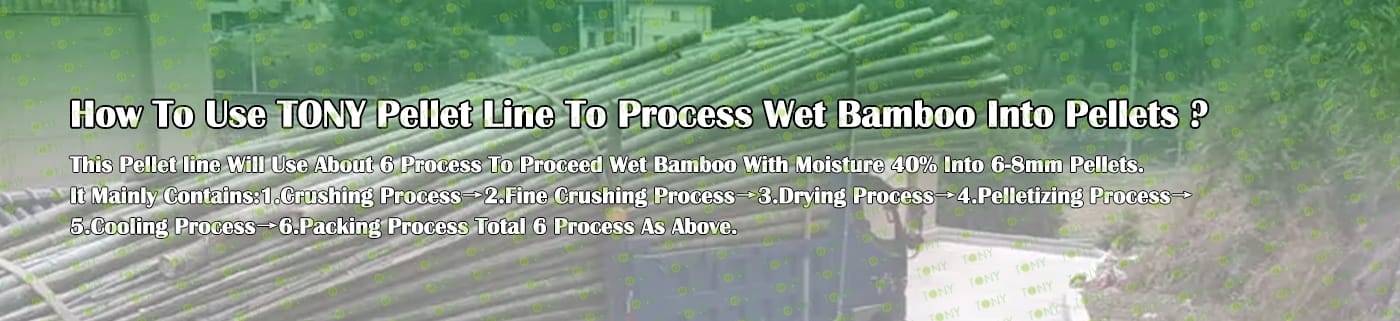 Оборудването за мокра обработка на бамбукови пелети (т.е. машина за пелети от дървесна биомаса и поддържаща производствена линия) е специално проектирано да обработва дървесни материали като дървени стърготини, бамбук и клони в пелети с висока плътност.