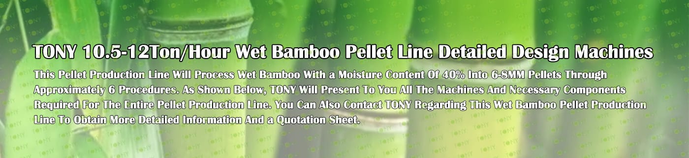 Заводът за производство на мокри бамбукови пелети с марка TONY 10,5-12 тона/час може да използва мокър бамбук като основна суровина. След предварителна обработка и обработка, той се втвърдява в гориво от бамбукови пелети с висока плътност. Това гориво е идеален заместител на въглищата и петрола и играе роля в енергоспестяването и намаляването на емисиите. В момента той се използва широко в региони, богати на бамбукови ресурси.