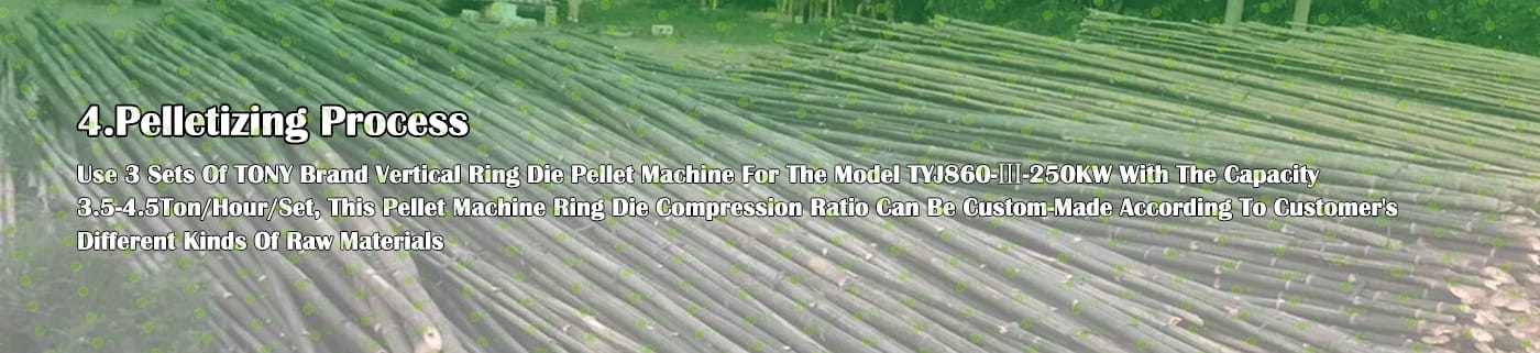 3.TONY Марка 10,5-12 тона / час Мокри бамбукови пелетни процеси Процес на проекта
