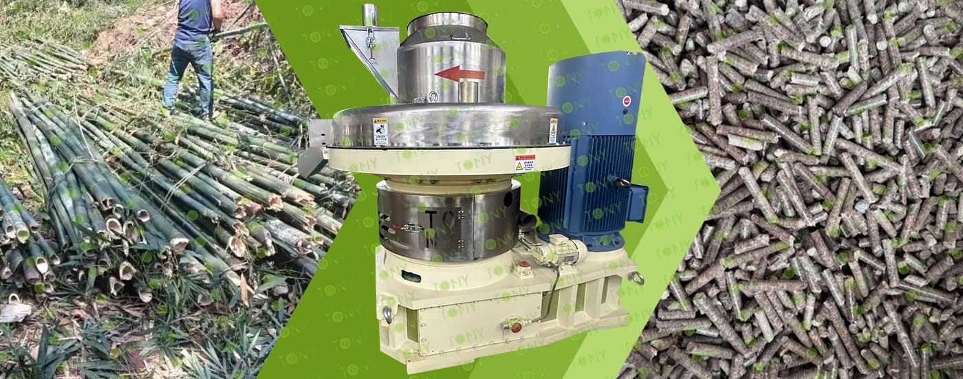 Изсушеният бамбуков прах (съдържание на влага 10%-15%) трябва да бъде преобразуван в пелети от биомаса с висока плътност (1,1-1,3g/cm³) и лесни за съхранение чрез "екструзионно формоване". Основното оборудване е пръстеновидната пелетна машина (оборудването за формоване, което е най-подходящо за свойствата на бамбука с високо съдържание на влакна).