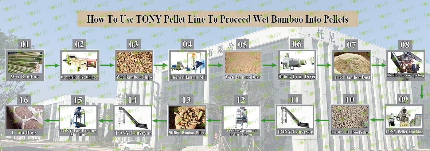 3.TONY Brand 12-14Ton /Hour Мокри бамбукови пелети Процес на проекта