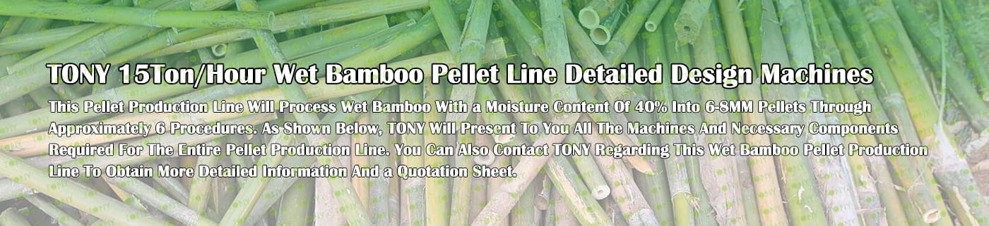 Заводът за производство на мокри бамбукови пелети с марка TONY 15 тона/час може да използва мокър бамбук като основна суровина. След предварителна обработка и обработка, той се втвърдява в гориво от бамбукови пелети с висока плътност. Това гориво е идеален заместител на въглищата и петрола и играе роля в енергоспестяването и намаляването на емисиите. В момента той се използва широко в региони, богати на бамбукови ресурси.