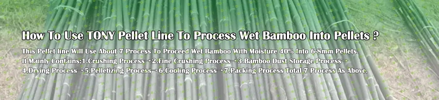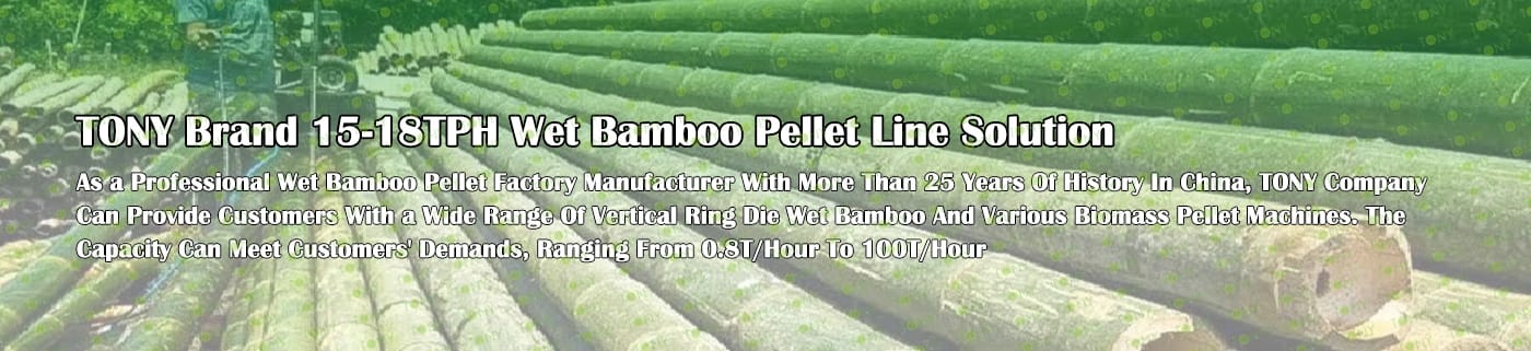Заводът за производство на мокри бамбукови пелети с марка TONY 15-18 тона/час може да използва мокър бамбук като основна суровина. След предварителна обработка и обработка, той се втвърдява в гориво от бамбукови пелети с висока плътност. Това гориво е идеален заместител на въглищата и петрола и играе роля в енергоспестяването и намаляването на емисиите. В момента той се използва широко в региони, богати на бамбукови ресурси.
