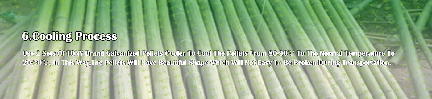5. Процес: Процес на раздробяване - Процес на фино раздробяване - Процес на съхранение на бамбуков прах - Процес на сушене - Процес на пелетизиране - Процес на охлаждане - Процес на опаковане