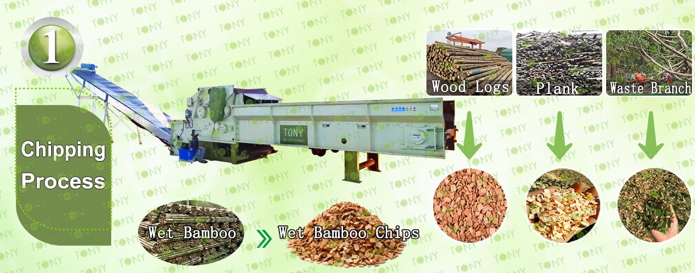 1. Процес на мокър бамбук към бамбуков чипс: