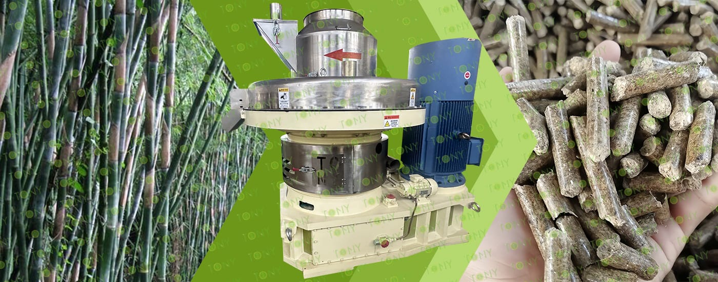 Изсушеният бамбуков прах (съдържание на влага 10%-15%) трябва да бъде преобразуван в пелети от биомаса с висока плътност (1,1-1,3g/cm³) и лесни за съхранение чрез "екструзионно формоване". Основното оборудване е пръстеновидната пелетна машина (оборудването за формоване, което е най-подходящо за свойствата на бамбука с високо съдържание на влакна).