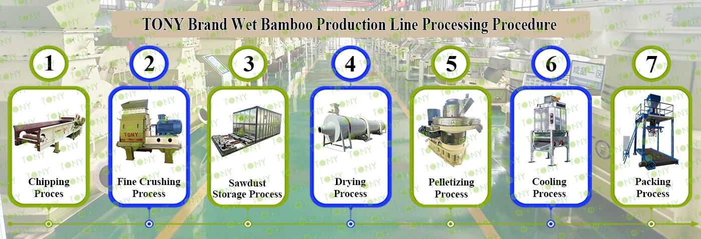 3.TONY Brand 15-18Ton /Hour Процес на проекта за мокри бамбукови пелети