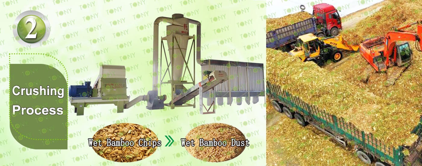 A. Този процес се използва главно за смачкване на 25-55 mm бамбукови чипове в 8-14 mm бамбуков прах.