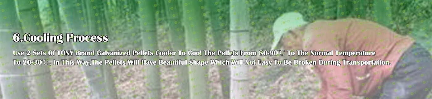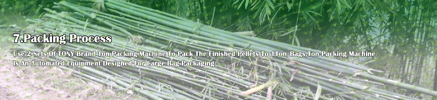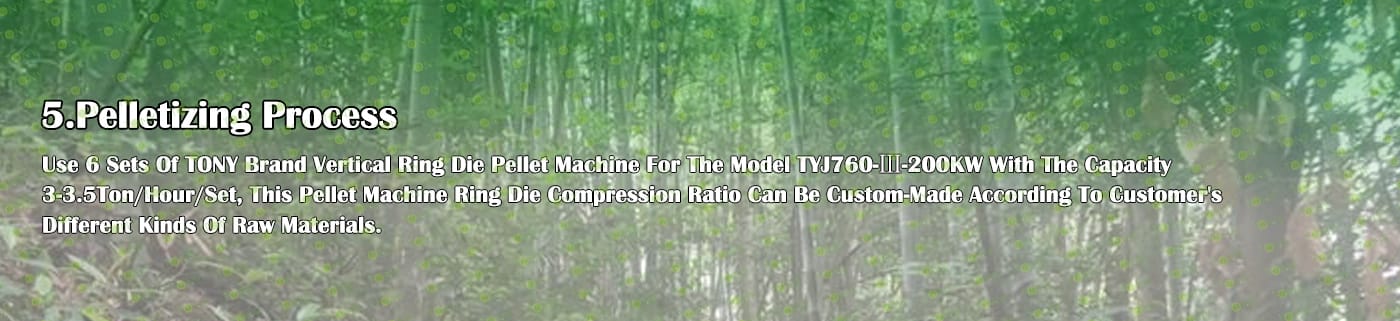 5. Процес: Процес на раздробяване - Процес на фино раздробяване - Процес на съхранение на бамбуков прах - Процес на сушене - Процес на пелетизиране - Процес на охлаждане - Процес на опаковане