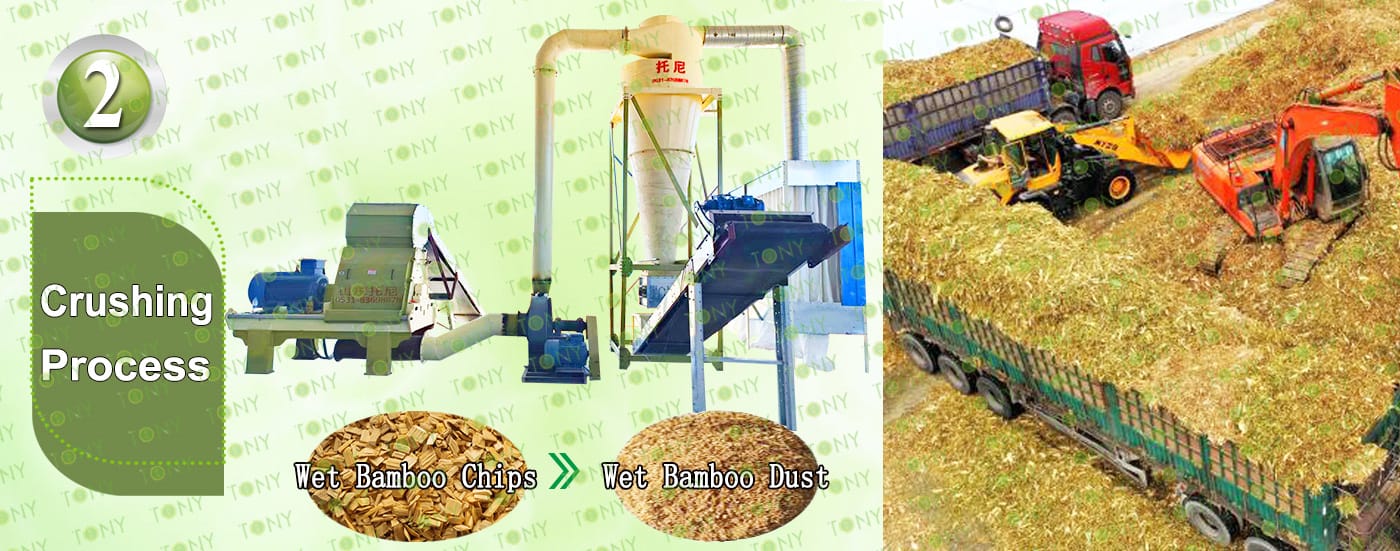 1. Процес на мокър бамбук към бамбуков чипс: