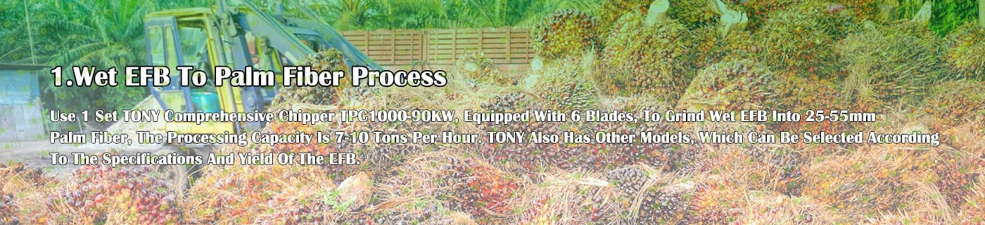 | 1. За смилане на EFB в 25-55 мм палмово влакно. 2.Модел: TPC1000-90KW с 6 Baldes*1set 3.Капацитет: 7-10 тона/час. |
