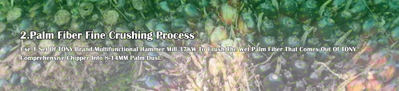 A. Този процес се използва главно за смачкване на 25-55 mm палмови влакна в 8-14 mm палмов прах.