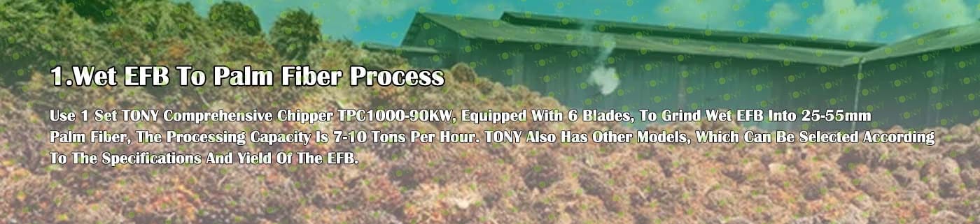 | 1. За смилане на EFB в 25-55 мм палмово влакно. 2.Модел: TPC1000-90KW с 6 Baldes*1set 3.Капацитет: 7-10 тона/час. |
