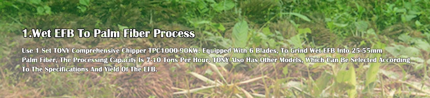 | 1. За смилане на EFB в 25-55 мм палмово влакно. 2.Модел: TPC1000-90KW с 6 Baldes*1set 3.Капацитет: 7-10 тона/час. |