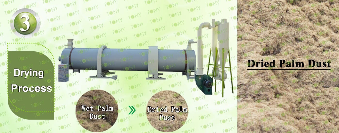 3. Процес на сушене на мокър палмов прах: