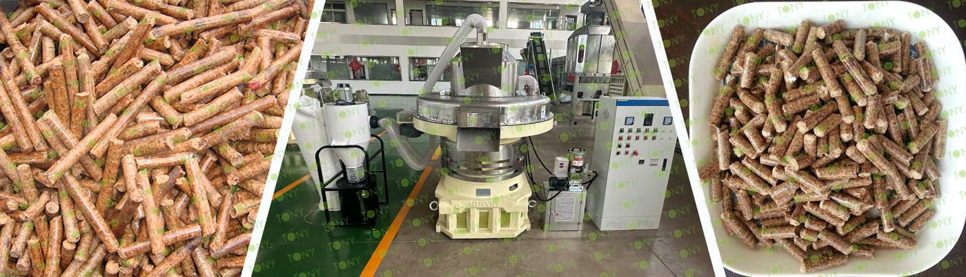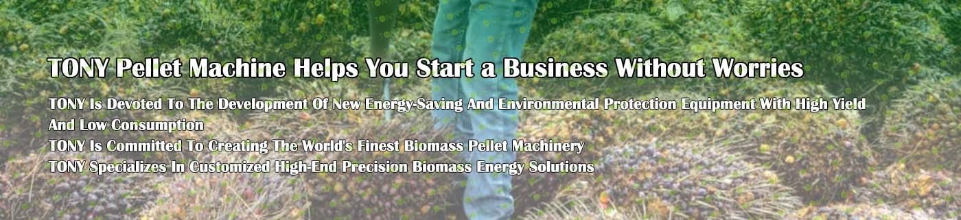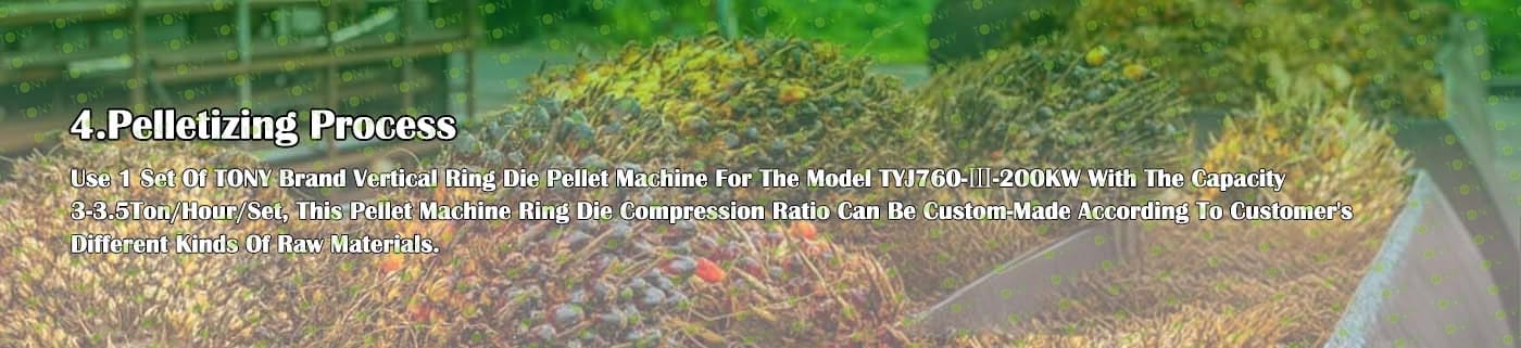 4. Основна машина: цялостна дробилка, чукова мелница, сушилня с ротационен барабан, машина за пелети TONY TYJ760-Ⅲ-200KW, охладител за пелети, опаковъчна машина и лентови транспортьори