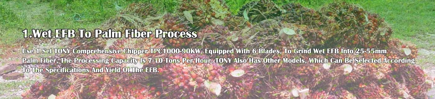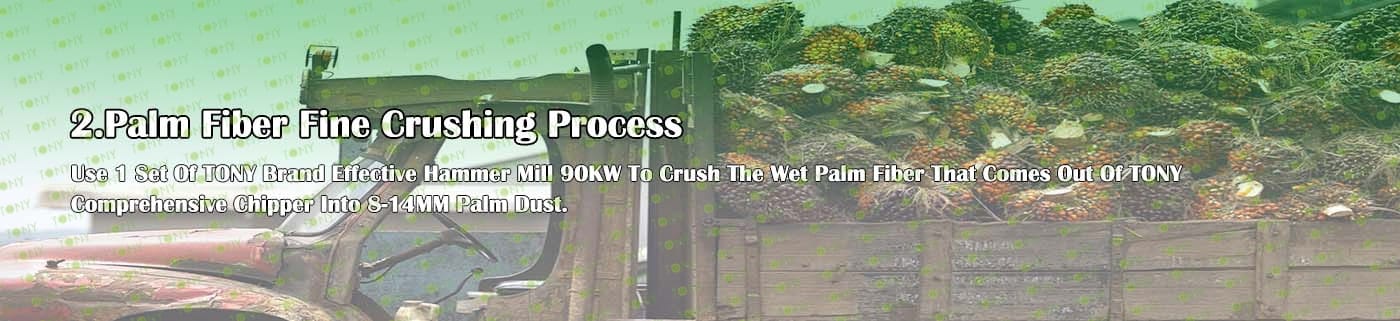 A. Този процес се използва главно за смачкване на 25-55 mm палмови влакна в 8-14 mm палмов прах.