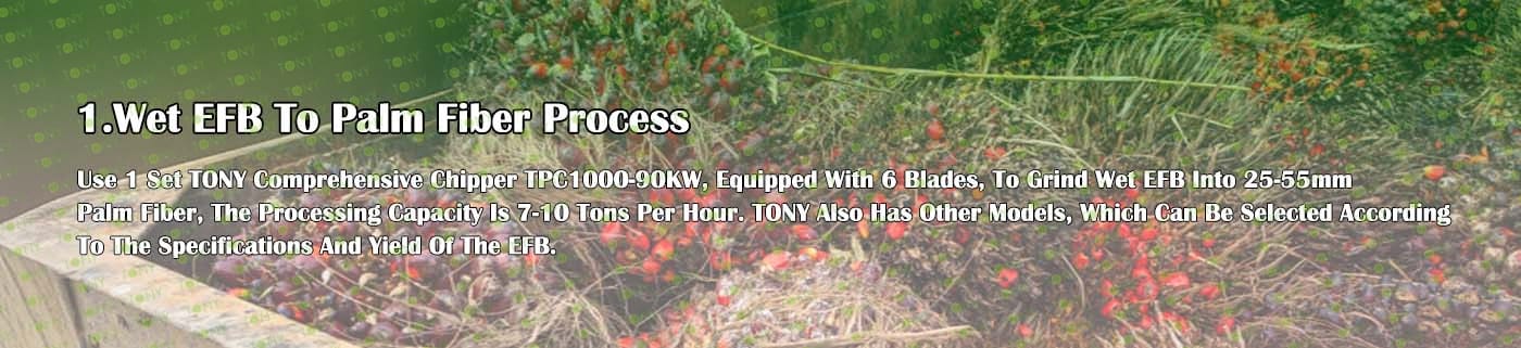 | 1. За смилане на EFB в 25-55 мм палмово влакно. 2.Модел: TPC1000-90KW с 6 Baldes*1set 3.Капацитет: 7-10 тона/час. |