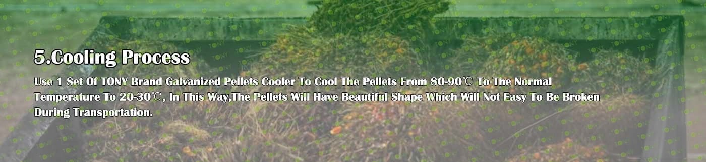 4. Основна машина: цялостна дробилка, чукова мелница, сушилня с ротационен барабан, машина за пелети TONY TYJ551-Ⅲ-110KW, охладител за пелети, опаковъчна машина и лентови транспортьори