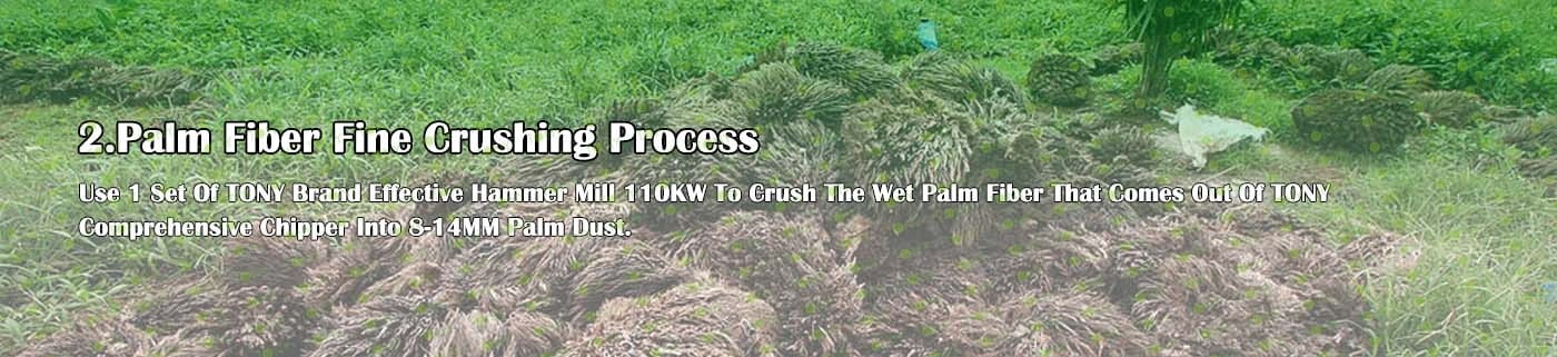 A. Този процес се използва главно за смачкване на 25-55 mm палмови влакна в 8-14 mm палмов прах.
