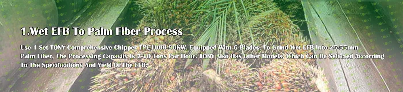 | 1. За смилане на EFB в 25-55 мм палмово влакно. 2.Модел: TPC1000-90KW с 6 Baldes*1set 3.Капацитет: 7-10 тона/час. |