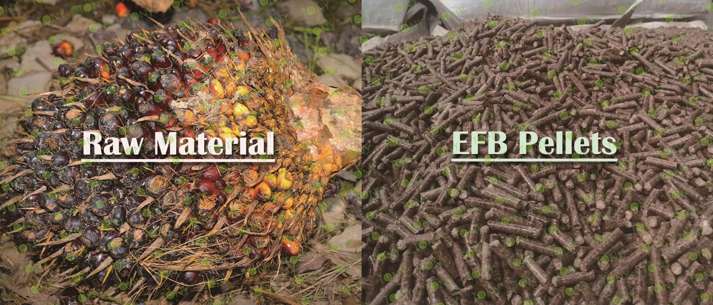 EFB е основен отпадъчен продукт от преработката на палмово масло. Всеки тон преработен палмов плод произвежда приблизително 0,2-0,25 тона свеж EFB (60%-75% влага). Предлагането на суровини е изключително изобилно.
