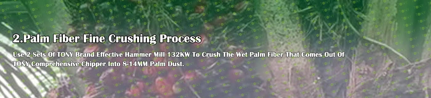 A. Този процес се използва главно за смачкване на 25-55 mm палмови влакна в 8-14 mm палмов прах.