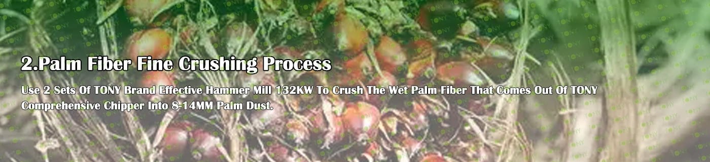 A. Този процес се използва главно за смачкване на 25-55 mm палмови влакна в 8-14 mm палмов прах.