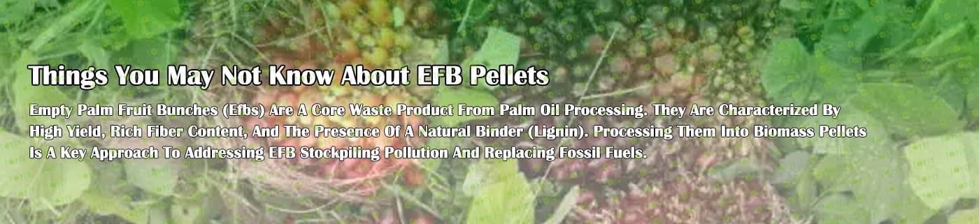 Преработката на EFB (празни гроздове от палмови плодове) в пелети от биомаса е важен начин за реализиране на оползотворяването на ресурсите от палмови отпадъци и замяна на енергията от изкопаеми горива. Ядрото на процеса е да се преобразува насипен EFB с висока влажност в чисто гориво с висока плътност, лесно за съхранение и транспорт чрез процеса на „предварителна обработка – сушене – раздробяване – пелетизиране – охлаждане и опаковане“.
