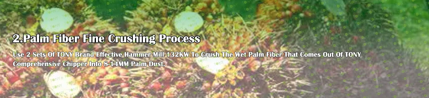 A. Този процес се използва главно за смачкване на 25-55 mm палмови влакна в 8-14 mm палмов прах.