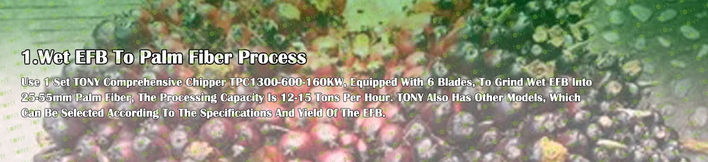 | 1. За смилане на EFB в 25-55 мм палмово влакно. 2.Модел: TPC1300-600-160KW с 6 Baldes*1set 3.Капацитет: 12-15 тона/час. |