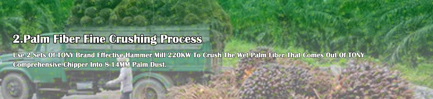 A. Този процес се използва главно за смачкване на 25-55 mm палмови влакна в 8-14 mm палмов прах.