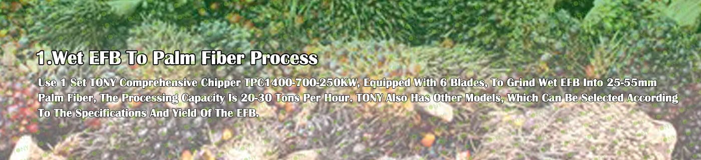 | 1. За смилане на EFB в 25-55 мм палмово влакно. 2.Модел: TPC1400-700-250KW с 6 Baldes*1set 3.Капацитет: 20-30 тона/час. |